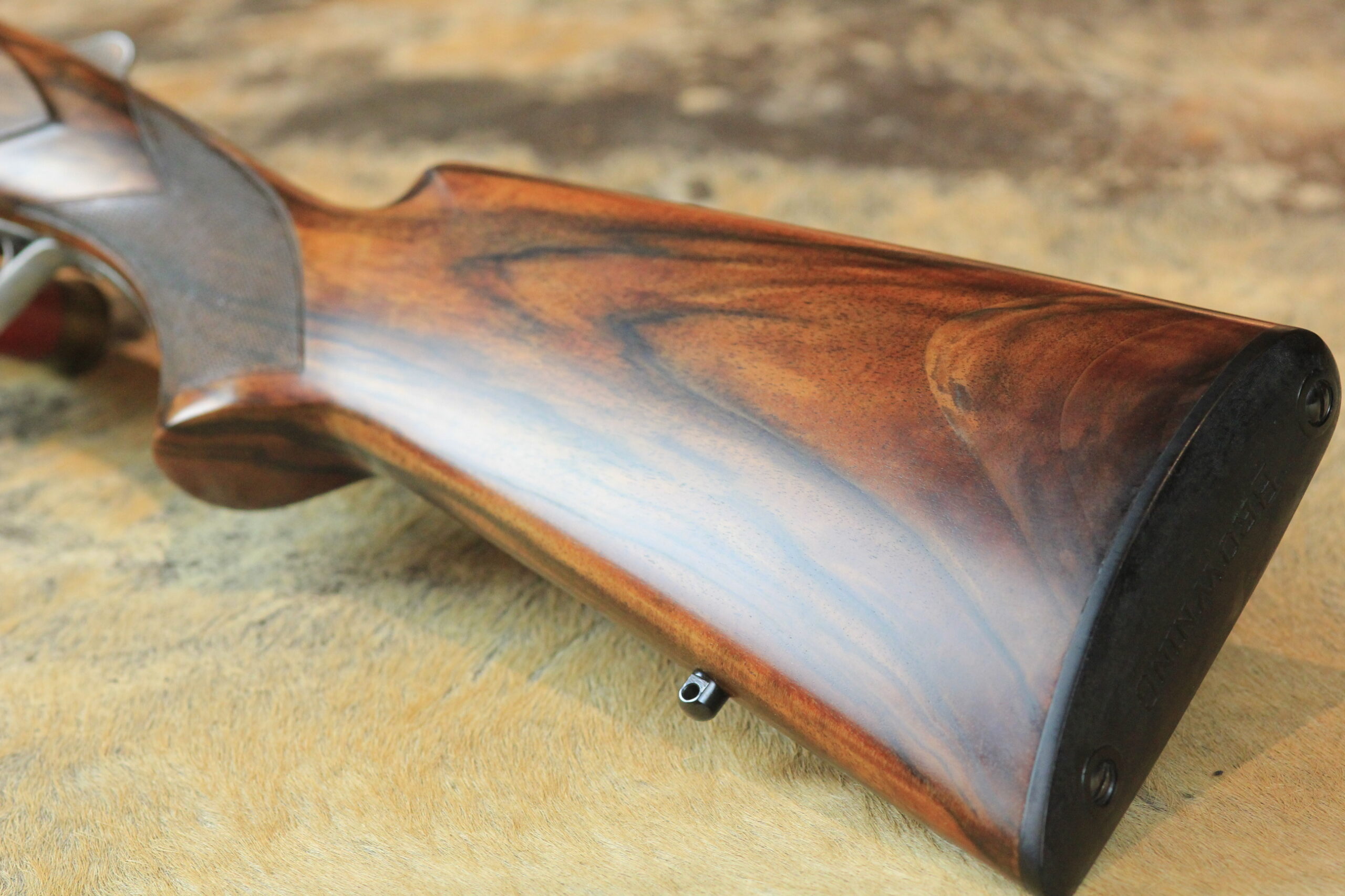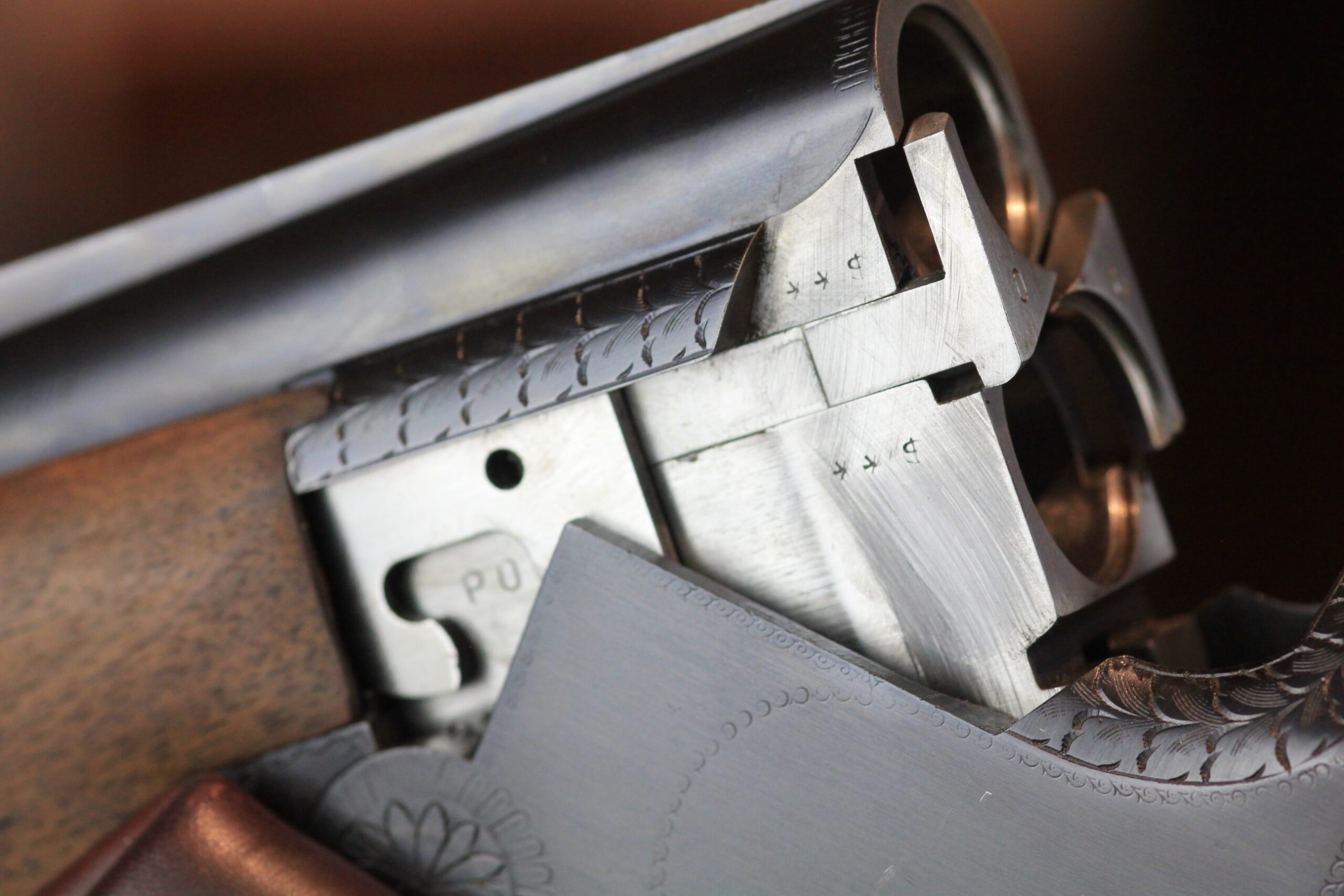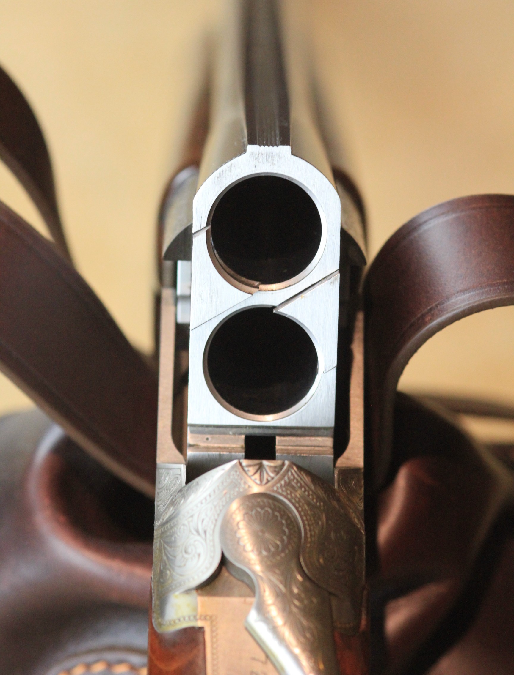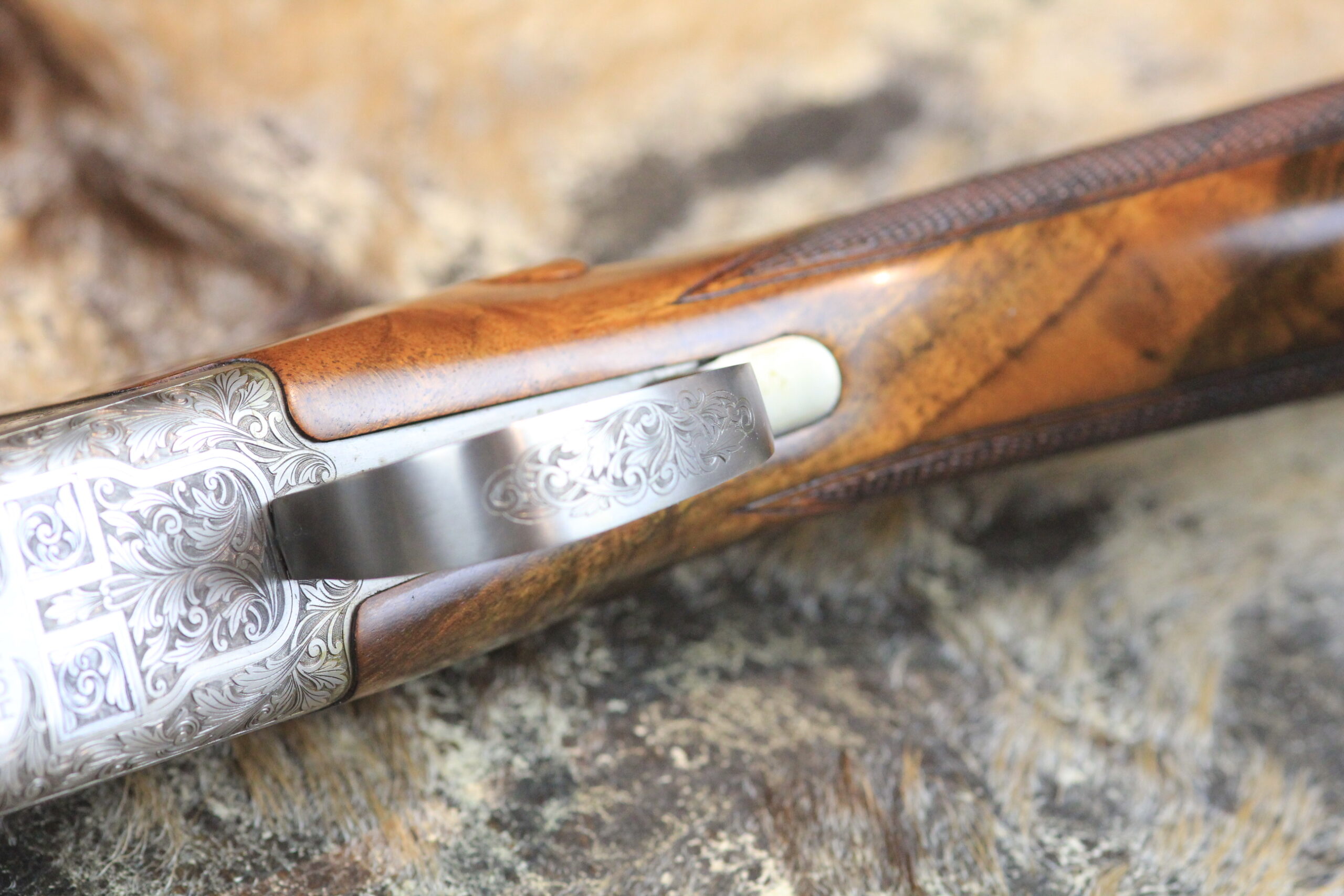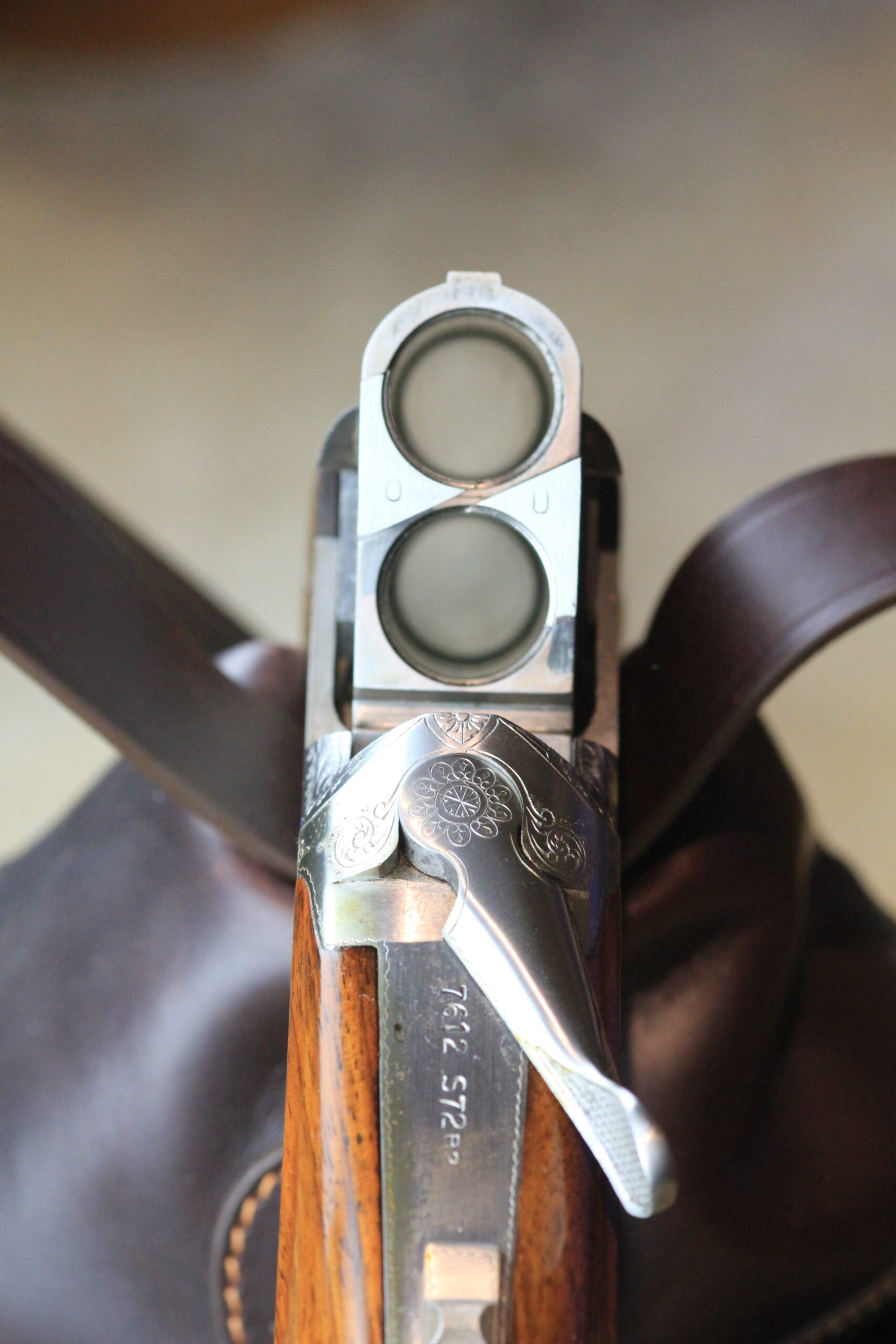 Besonderheiten: HK 8,mit einer Arabeskengravur und Flugwildjagdmotiv Fasanen,Rothühnern ( Bottega C. Giovanelli ) und Ejektoren,Umschaltung der Laufwahl auf dem Kolbenhals in der Sicherung, Waffe hat Steelproof und ist universel einsetzbar