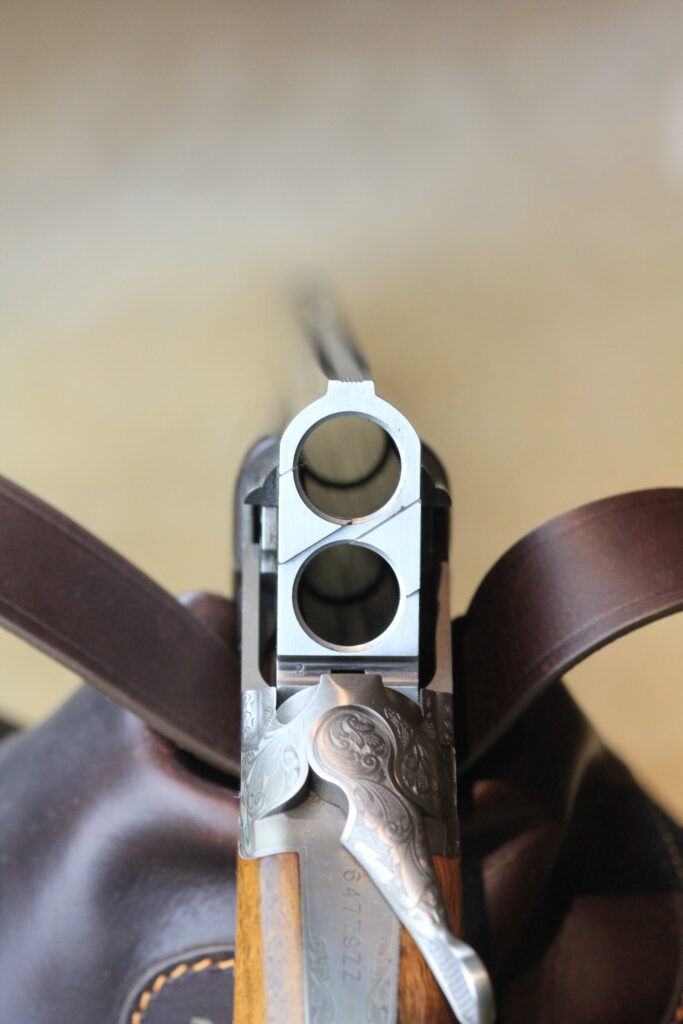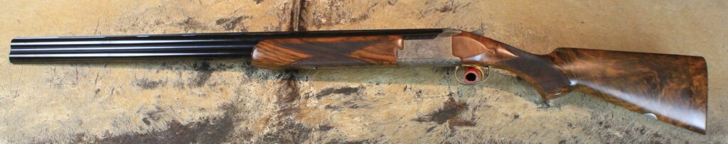 Choke: oberer Choke ist ein auswechselbarer BRILEY Choke made by Krieghoff – ULM unten ist ein fester Choke drin 3/4 zu 1/2 mit breiter Brodwayschiene