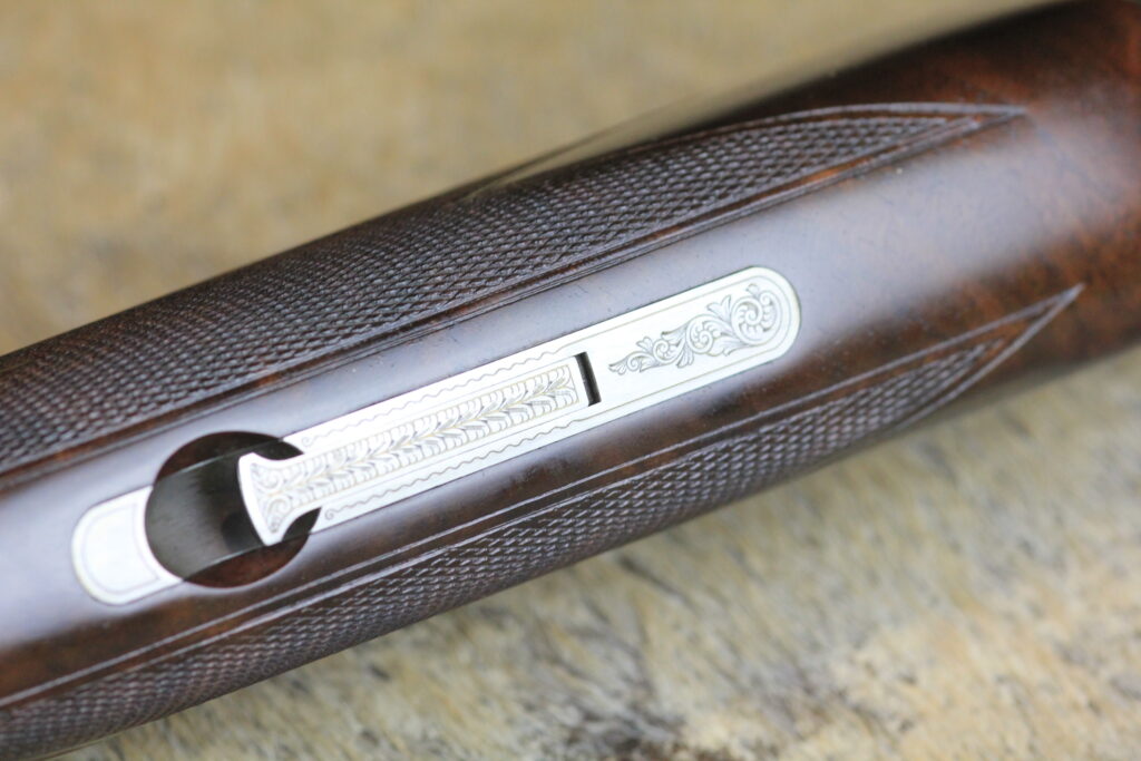 Schäftung: Parcourschaft Sporting mit orinalem Holzabschluss und dreiteiligem breitem Vorderschaft wie es orginal bei FN gemacht wurde