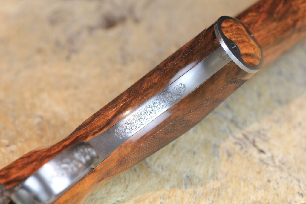 Besonderheiten: eine absolute hohe Ausführung der Mod. 525 mit einer wertigen Gravur sowie eine ansprechende Holzqualität ohne festen Riemenbügelhalterungen