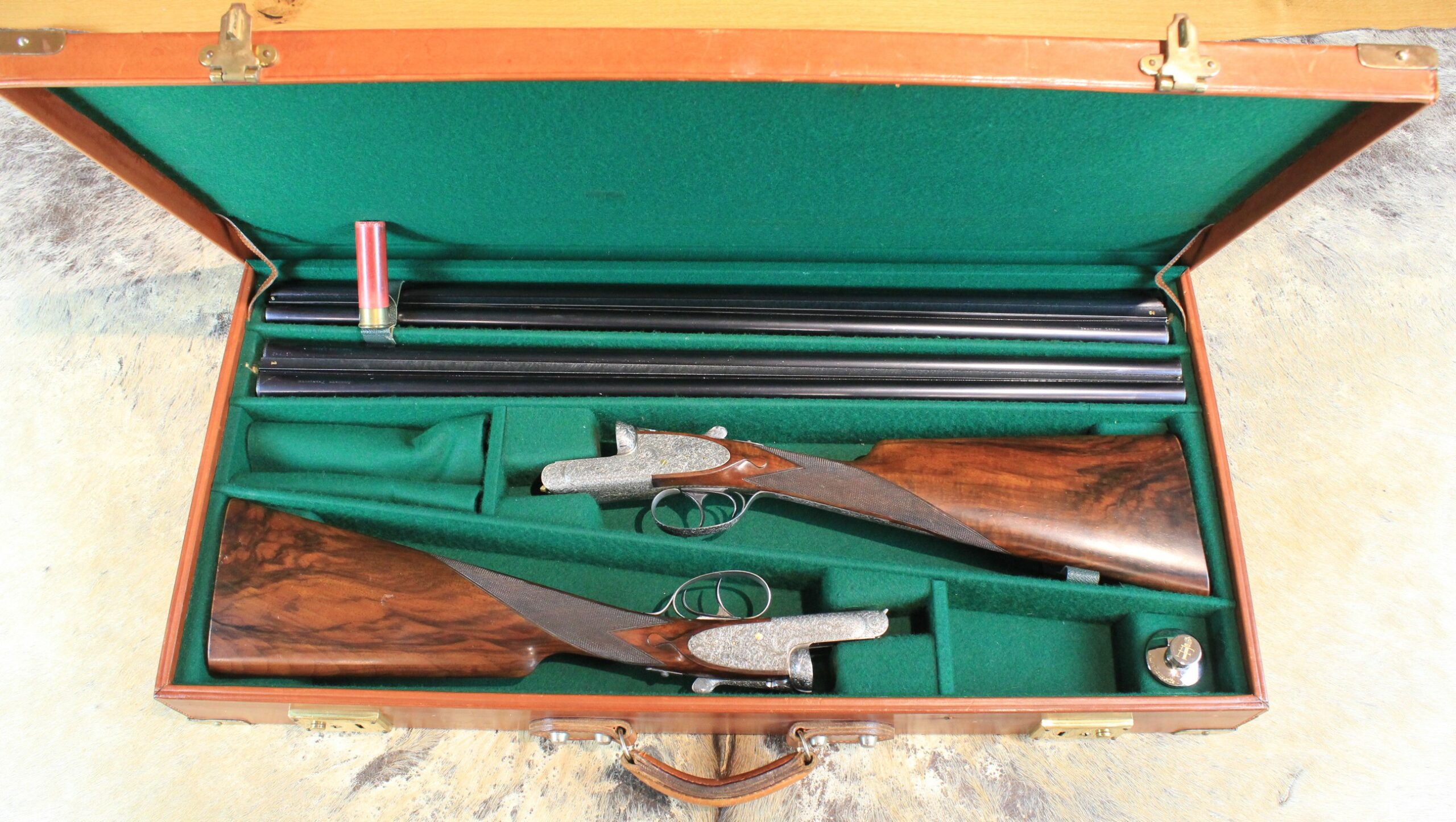 Besonderheiten: klassische Doppelflinte mit absolutem präzisions Nivieau, Ejektoren, automatische Sicherung