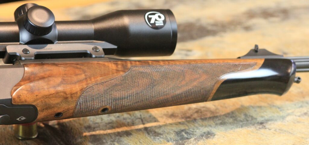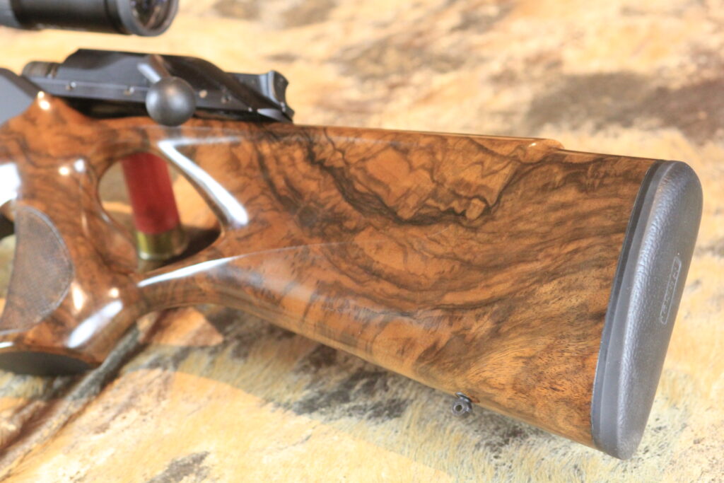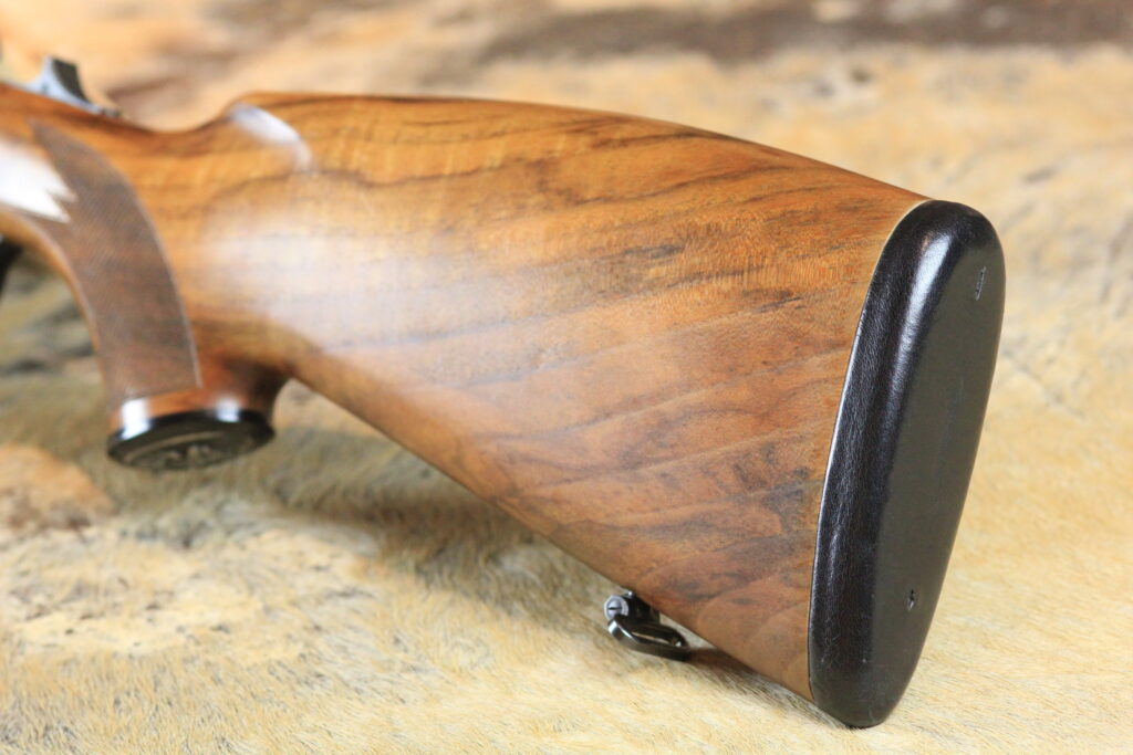 - Schaft: edler Nussbaumlochschaft mit griffiger Fischhaut und Ebenholzabschlüsse