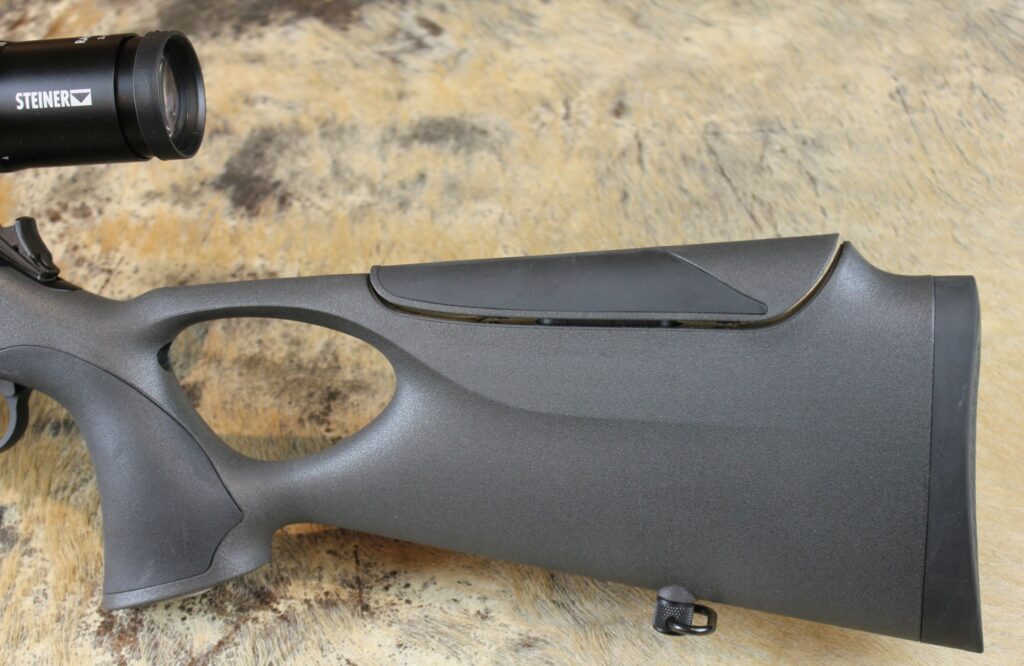 Schäftung: links Schaft, bayrische Backe, Schweinsrücken, inkl. Lederkappe