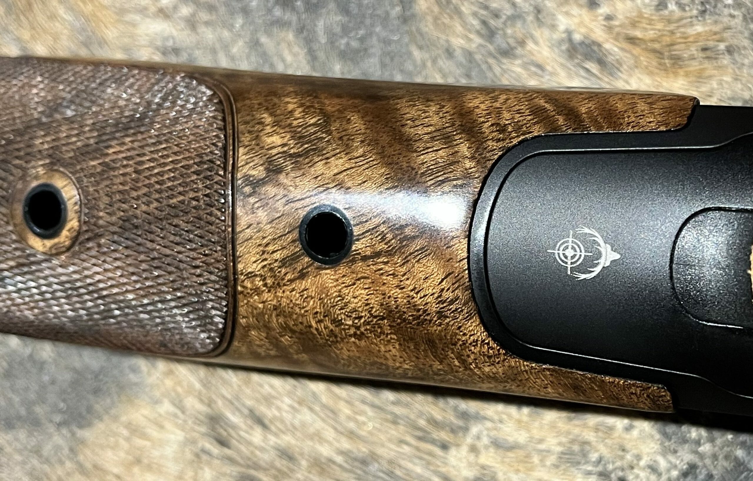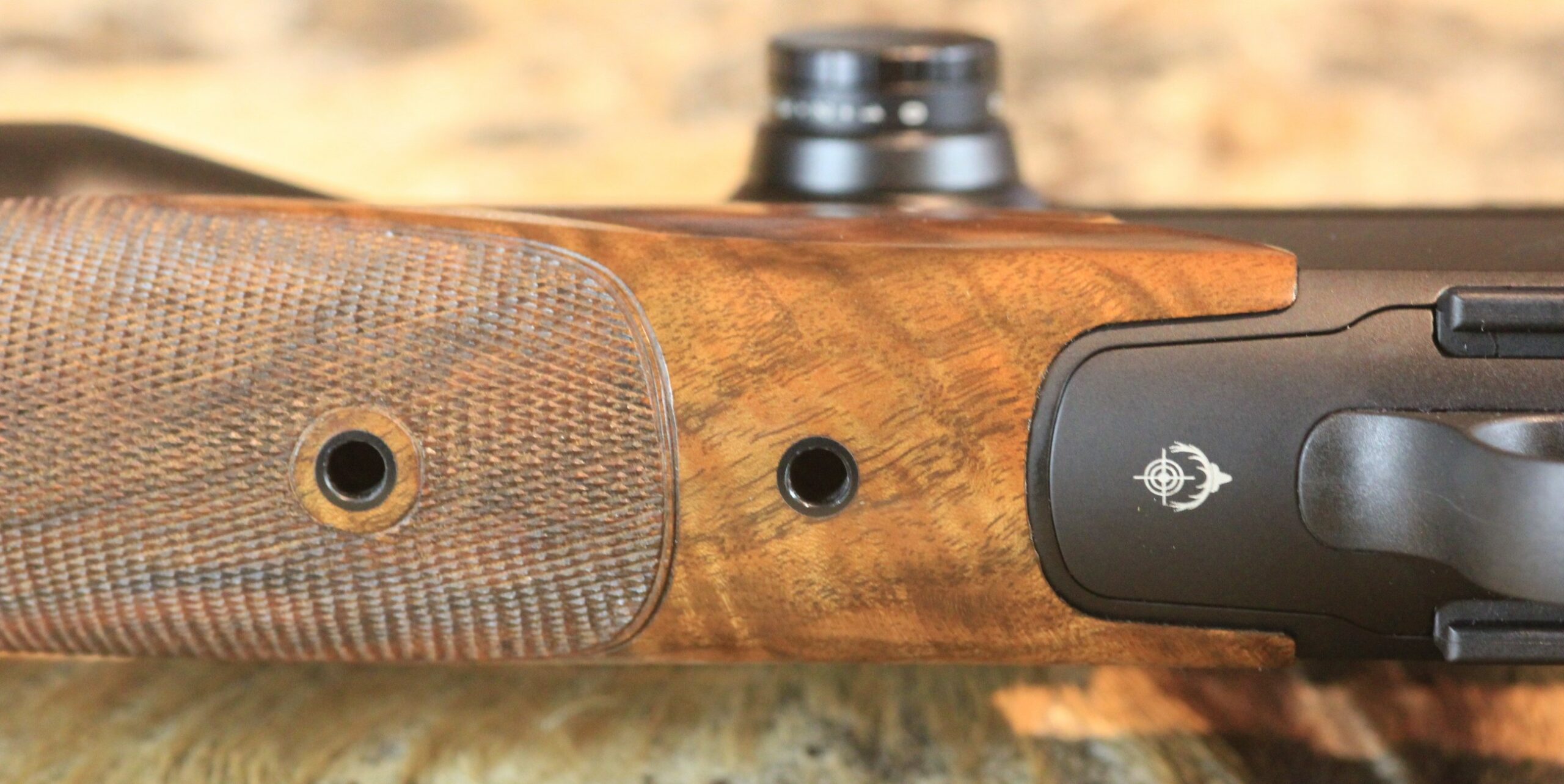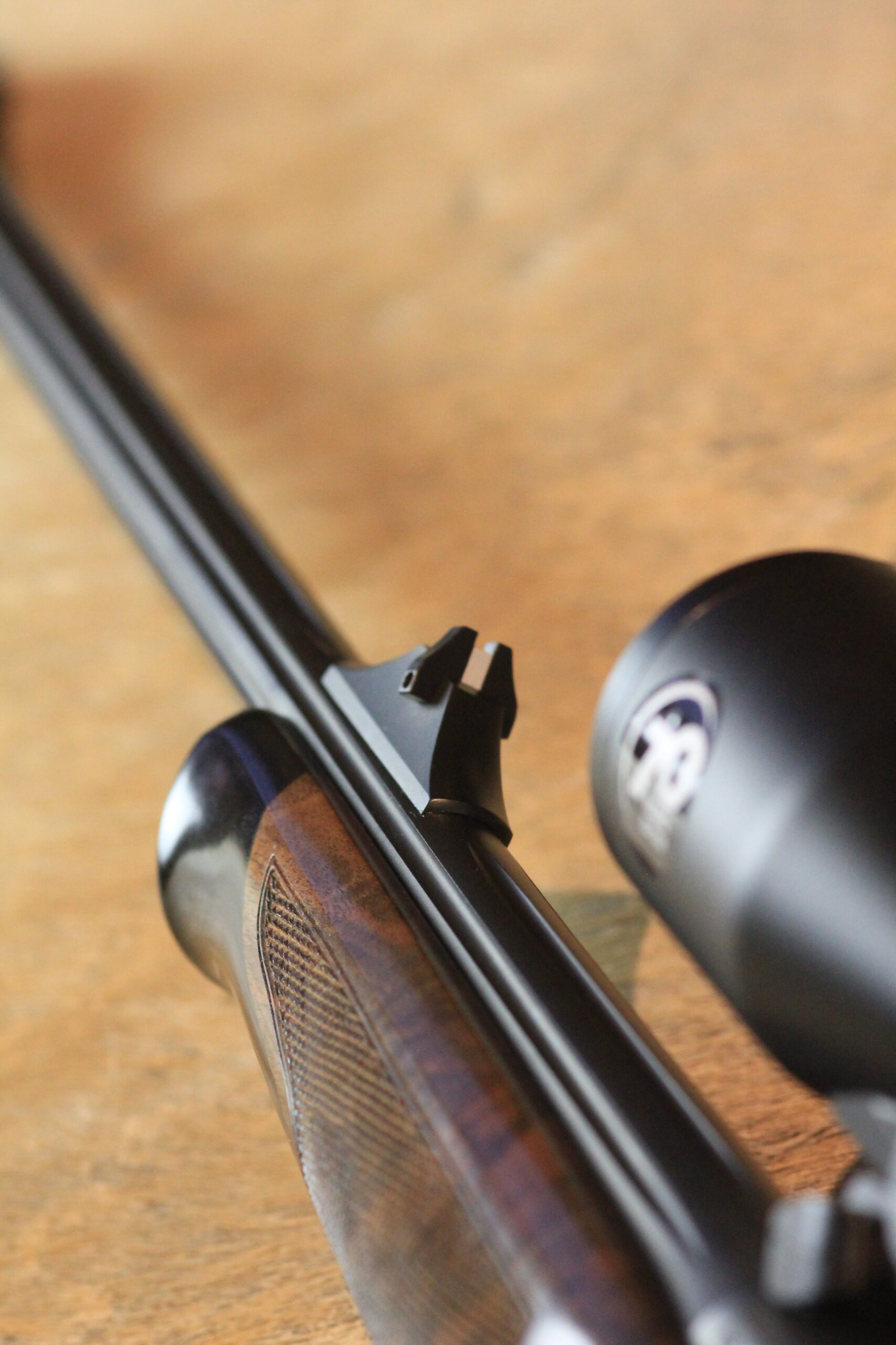 - Schaft: edler Nussbaumlochschaft mit griffiger Fischhaut und Ebenholzabschlüsse