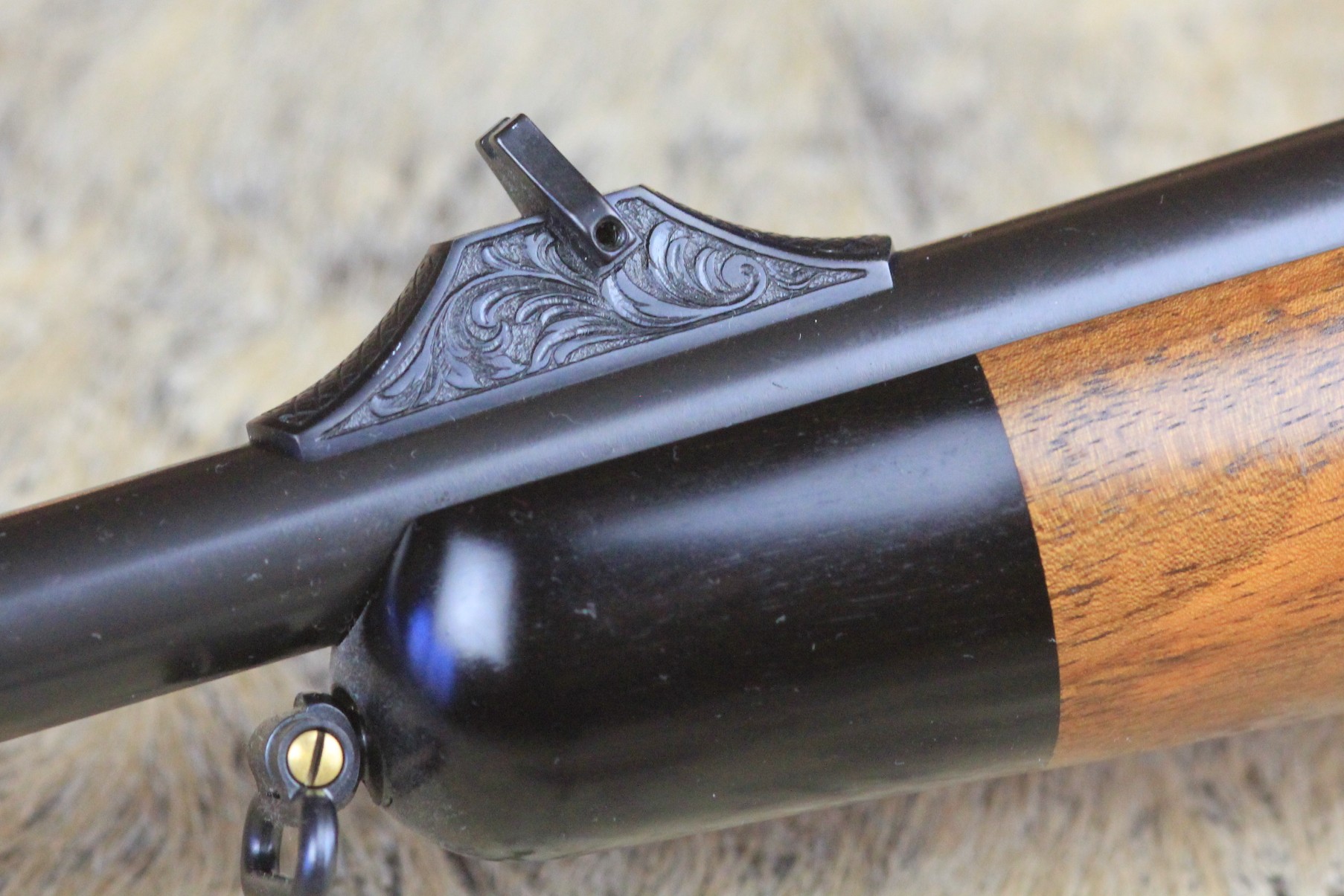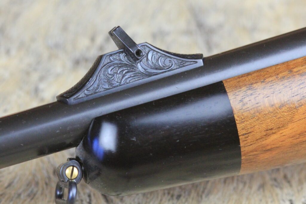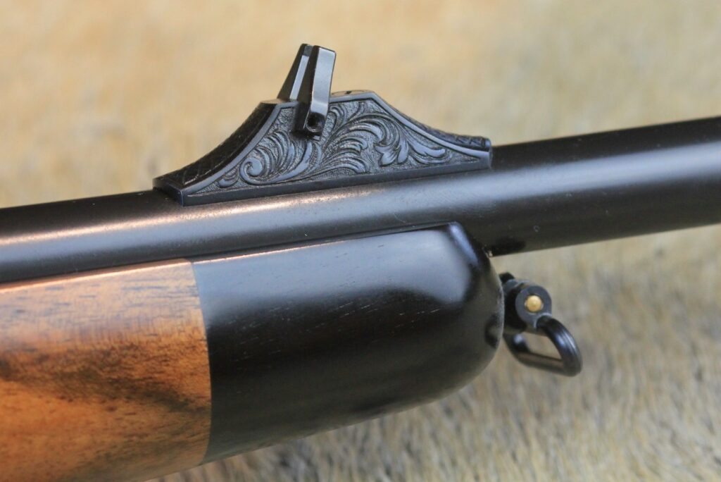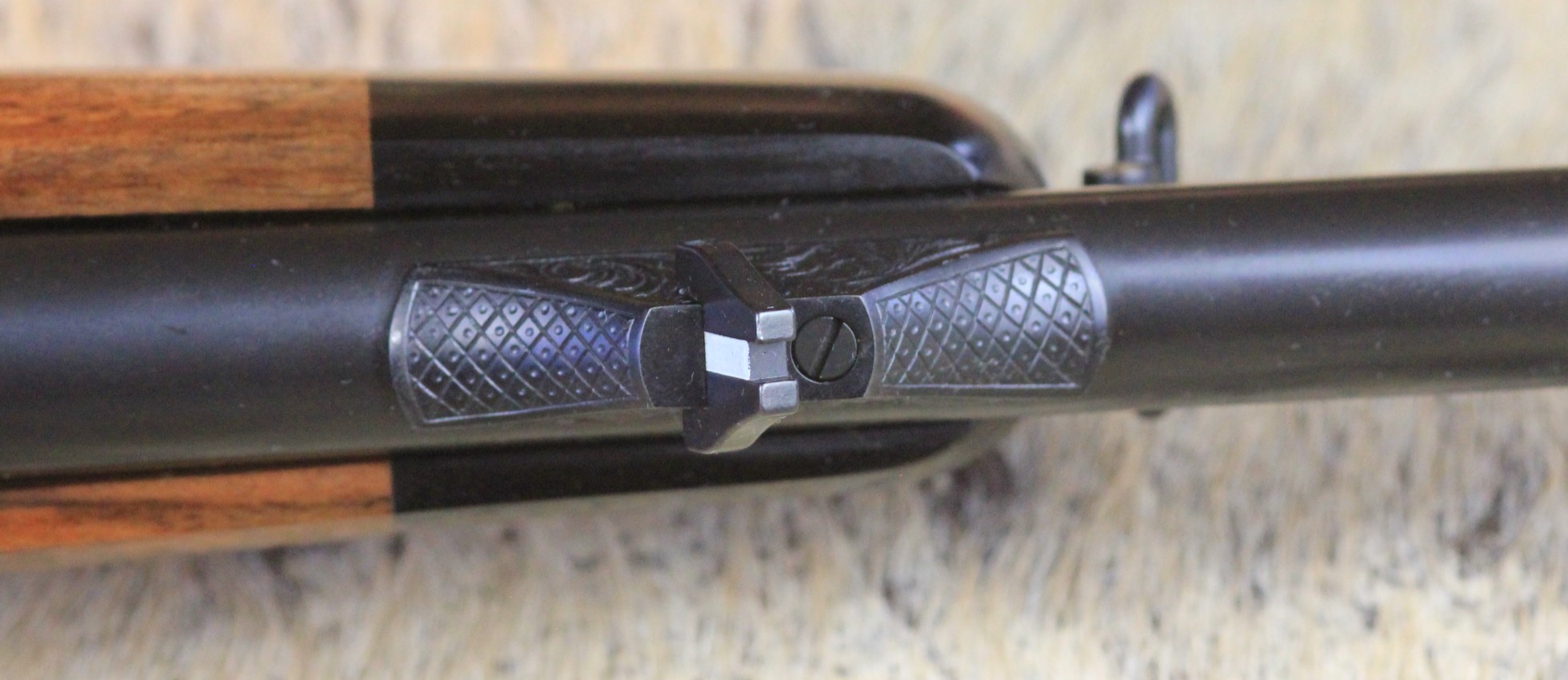 - Schaft: Nussbaumholz mit griffig geschnittener Fischhaut