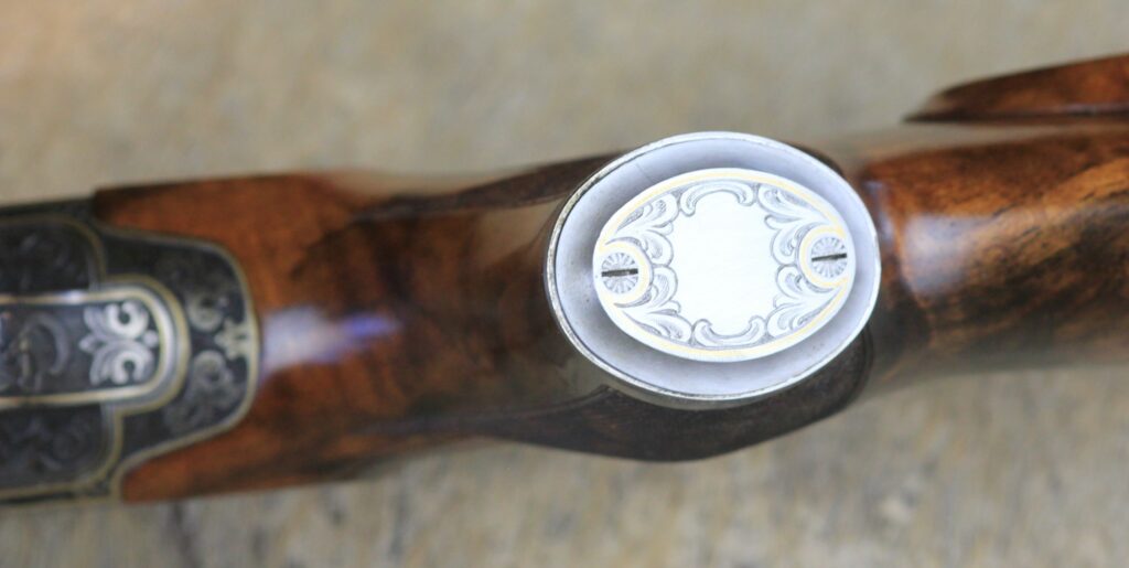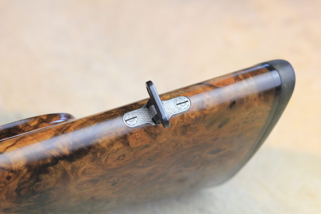 Schäftung: dt.Backe WURZELHOLZ 10 in Öl poliert,feiner Fischhaut mit Stahlpistolengriffkäpchen - Holzklasse: 10